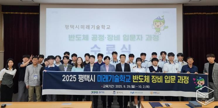 e데일리뉴스 | 평택시는 지난 1일 ‘2025년 미래기술학교 장비 입문 과정’ 수료식을 열고 총 19명의 수료생을 배출했다. 이번 교육은 관내 특성화고와 마이스터고 3학년 가운데 반도체 기업 취업을 희망하는 학생들을 대상으로 운영된 것이 특징이다.