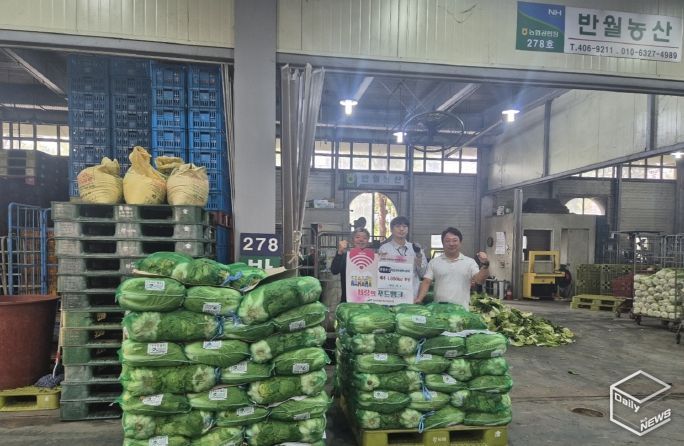 e데일리뉴스 | 안산시 농수산물도매시장은 지난 2일 도매시장 내 중도매인인 반월농산(대표 노영현)으로부터 추석 명절을 맞이해 배추 1,800kg을 기탁받았다고 3일 밝혔다.