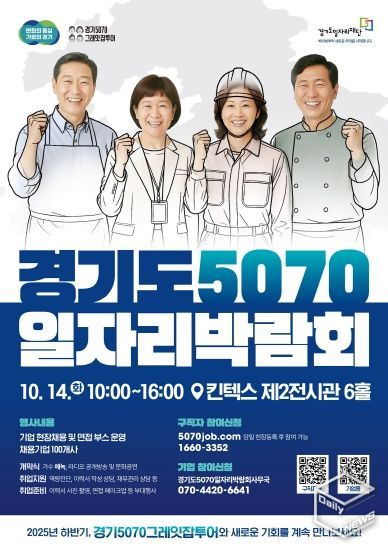 한편 이번 박람회는 ‘경기 5070 그레잇잡투어’ 사업의 하나로 진행된다. ‘경기 5070 그레잇잡투어’는 인구구조 변화와 중장년 구직 수요 증가에 대응해 재취업 지원과 상시 채용 환경 조성을 위한 50~70대 중장년 특화 일자리박람회로, 7월부터 12월까지 남·북부 광역박람회 및 시군별 지역박람회를 추진중이다.