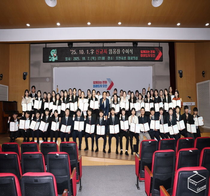 e데일리뉴스 | 오산시는 지난 10월 2일 오산시청 대회의실에서 2025년 신규 임용 공직자 52명을 대상으로 임용장 수여식을 개최했다고 밝혔다.