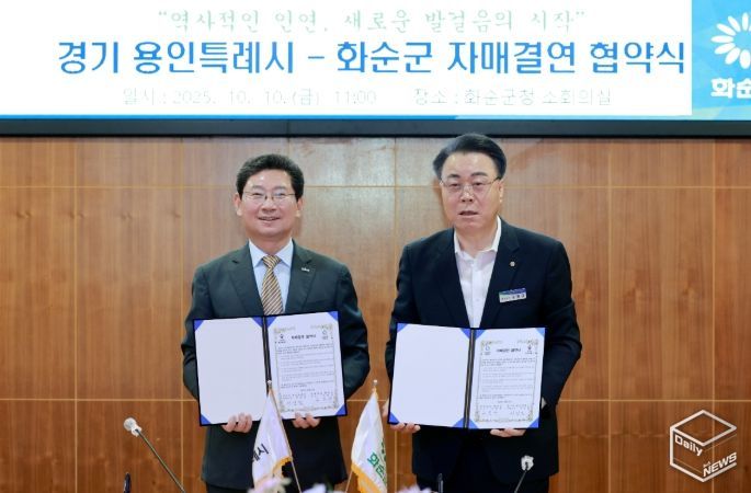 e데일리뉴스 | 용인특례시는 10일 전라남도 화순군과 자매결연을 체결하고 두 도시의 교류와 발전을 위해 적극 협력키로 했다.