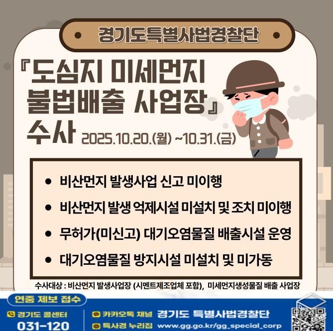 이번 수사는 미세먼지 농도가 증가하는 겨울철을 앞두고 건설공사현장 및 시멘트 제조업체, 대기배출시설 등에서의 불법적인 미세먼지 배출 행위를 사전 차단하기 위한 선제적 조치다. 미세먼지는 폐 깊숙이 침투해 호흡기와 심혈관 질환을 유발할 수 있는 1급 발암물질로 특히 어린이, 노약자는 장기간 노출될 경우 폐 기능 저하, 기관지염, 심근경색, 뇌졸중 위험 증가 등 심각한 건강 피해를 입을 수 있다.