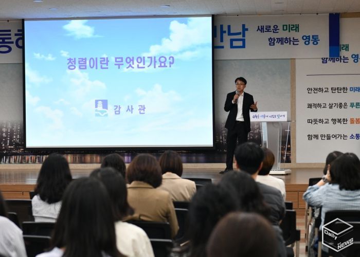 e데일리뉴스 | 수원시 영통구는 지난 14일 구청 대회의실에서 공직자들의 청렴 의식을 높이고 행정 신뢰성을 향상시키기 위하여 ‘2025 하반기 영통구 공직자 청렴교육’을 개최했다.