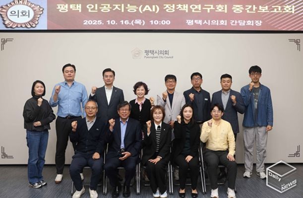 e데일리뉴스 | 평택시의회 ‘평택 인공지능(AI) 정책연구회’는 16일 시의회 간담회장에서 평택시 AI 산업 생태계 조성을 위한 정책 연구 용역 중간보고회를 열고 연구 진행 상황을 공유했다.