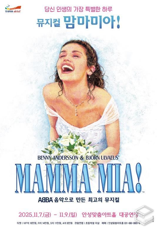 e데일리뉴스 | 안성맞춤아트홀은 오는 11월 7일부터 9일까지 대공연장에서 세계적인 히트 뮤지컬 '맘마미아!'를 무대에 올린다. 세대를 초월한 명곡과 유쾌한 스토리로 사랑받아온 이번 작품은 남녀노소 누구나 즐길 수 있는 최고의 힐링 뮤지컬이다.