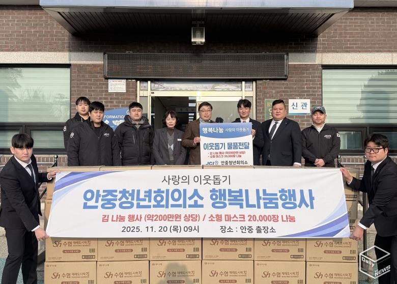 문종호 안중출장소장은 “어려운 이웃을 위한 따뜻한 나눔을 실천하신 청년회의소에 깊이 감사드린다”며 “후원 물품이 필요한 곳에 잘 전달될 수 있도록 최선을 다하겠다”고 전했다.