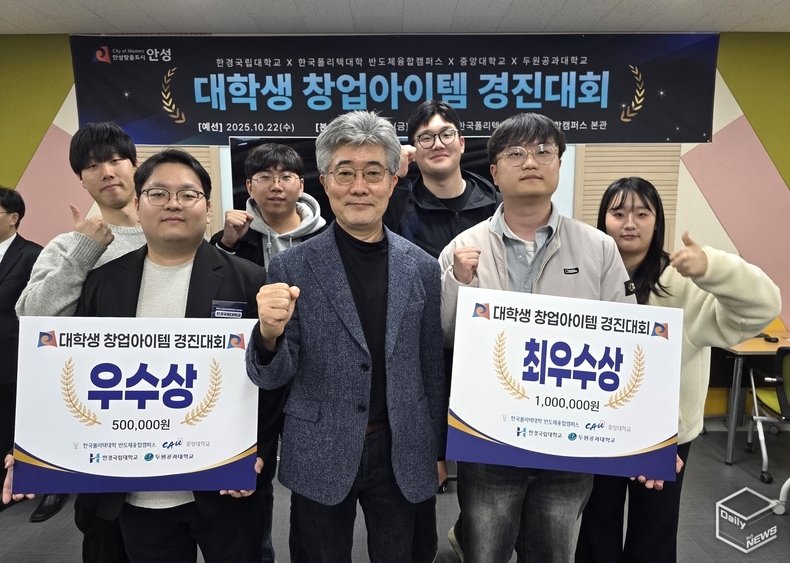 e데일리뉴스 | [안성=강경숙 기자] 한경국립대학교(총장직무대리 김태완)는 지난 14일, 한국폴리텍대학 반도체융합캠퍼스에서 열린 ‘안성시 대학생 창업아이템 경진대회’에서 최우수상과 우수상을 각각 수상했다.