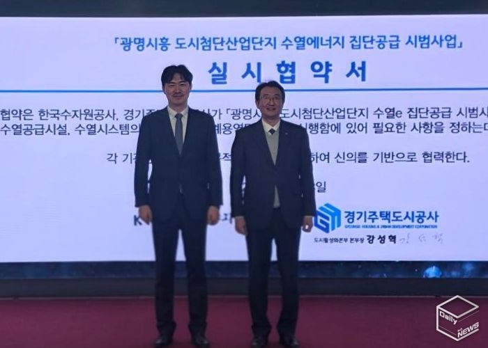 e데일리뉴스 | 경기주택도시공사(GH)는 3일 GH 수원 본사 9층 역량개발센터에서 한국수자원공사(K-water)와 함께 ‘광명시흥 도시첨단산업단지 수열에너지 집단공급 시범사업’ 추진을 위한 실시협약을 체결했다고 밝혔다. 이 자리에는 양 기관 관계자 약 30명이 참석했다.