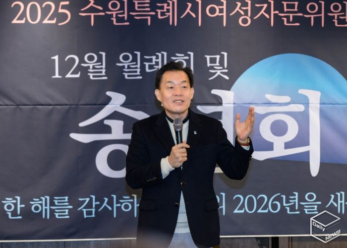 e데일리뉴스 | 이재준 수원시장이 3일 인계동 한 음식점에서 열린 수원시 여성자문위원회 송년 행사에 참석해 “아빠들을 위한 프로그램 운영부터 여성 권익 증진을 위한 후원까지 올해 여성자문위원회가 보내주신 따뜻한 성원에 감사드린다”고 말했다.