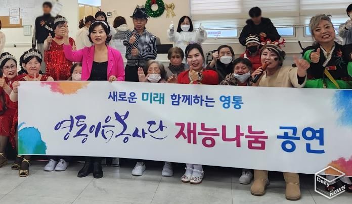 e데일리뉴스 | 수원시 영통구 주민자치센터 동아리(프로그램) 공연팀으로 구성된‘영통이음봉사단’은 지난 4일, 망포동 소재의 한 노인주간보호센터를 방문하여 어르신들을 대상으로 따뜻한 재능나눔 공연을 펼쳤다.