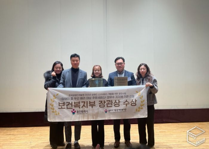 e데일리뉴스 | 용인특례시는 5일 서울에서 열린 ‘2025년 장애인 신규서비스 개발을 위한 공모사업 우수지자체 포상’에서 최우수 지방자치단체로 선정돼 보건복지부 장관 표창을 받았다.