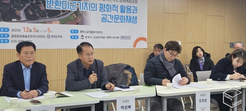 e데일리뉴스 | [평택=강경숙 기자] 평택 알파탄약고 부지의 향후 활용 방안을 모색하는 ‘2025 알파 탄약고 문화예술포럼’이 3일 ‘반환미군기지의 평화적 활용과 공간문화재생’이라는 주제로 평택시공익활동지원센터에서 알파문화예술공원 추진위원회와 평택문화원 공동 주최로 열렸다. 포럼은 미군 반환 부지를 단순 개발이 아닌 ‘평화·문화·역사 재생의 거점’으로 어떻게 설계할 것인지를 논의하기 위해 마련됐다.