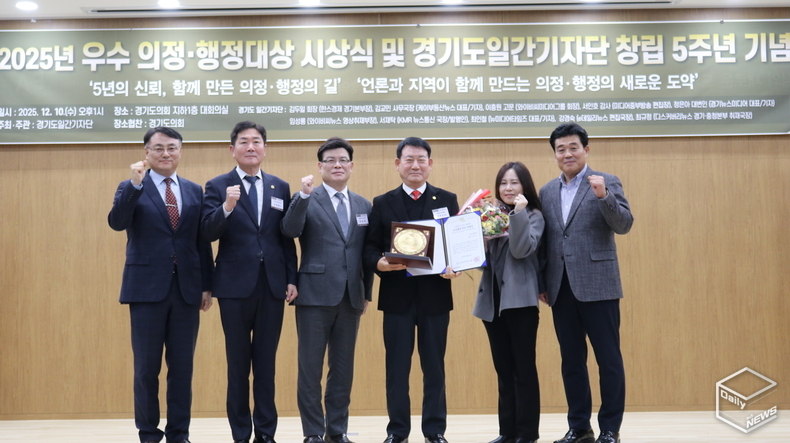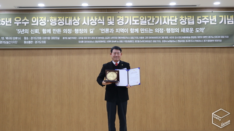 한편, 경기도일간기자단이 주관한 ‘2025 우수 의정·행정대상 시상식’은 외부 전문가 심사위원단 참여를 통해 심사의 신뢰도를 높이며, 도내 우수 의정·행정·공공기관 성과를 공정하게 조명하는 자리로 평가받고 있다./kksenews@naver.com