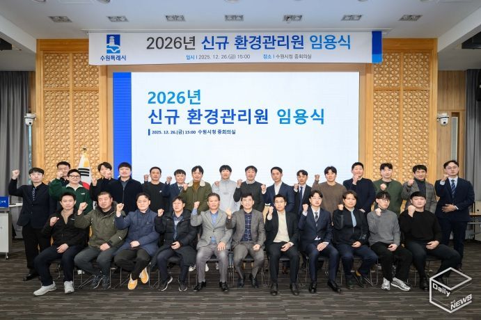 e데일리뉴스 | 수원특례시가 26일 시청 중회의실에서 2026년 신규 환경관리원 임용식을 열고, 신규 임용자 21명에게 임용장을 수여했다.