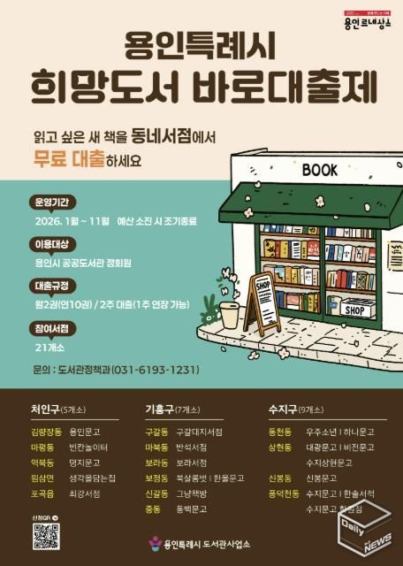 e데일리뉴스 | 용인특례시는 시민들의 높은 호응을 얻었던 희망도서 바로대출제를 내년 1월 2일부터 시행한다고 30일 밝혔다.