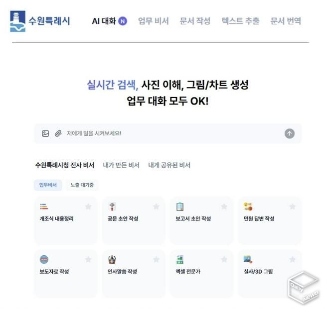 e데일리뉴스 | 수원특례시가 생성형 인공지능(AI)을 행정 전반에 활용하기 위해 12일 공직자를 대상으로 ‘수원 인공지능(AI) 업무 비서’ 서비스를 개시했다.