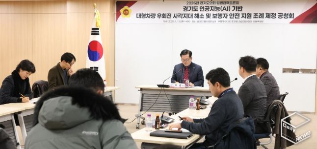 e데일리뉴스 | 경기도의회 건설교통위원회 허원 위원장(국민의힘·이천2)은 19일 경기도의회 중회의실에서 '경기도 인공지능(AI) 기반 대형차량 우회전 사각지대 해소 및 보행자 안전 지원 조례' 제정을 위한 공청회를 개최했다.