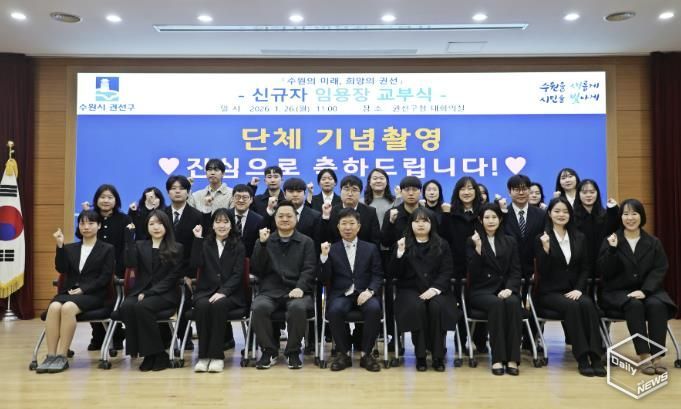 고호 권선구청장은 “수원의 미래인 우리 권선구 가족이 된 것을 진심으로 환영하며, 공무원으로서 긍지와 자부심을 갖고 청렴한 공직자가 되길 바란다”라고 전했다.