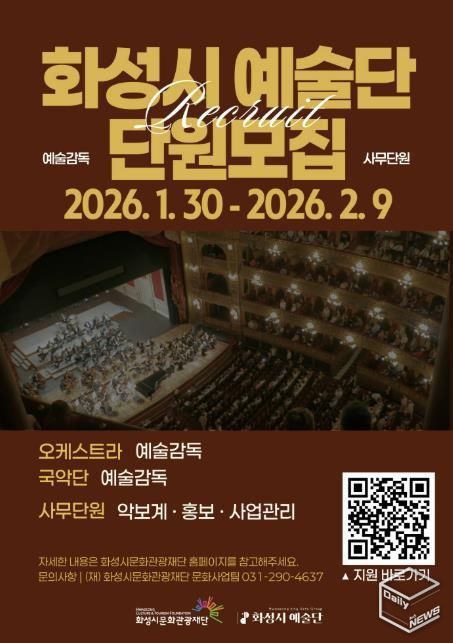 e데일리뉴스 | (재)화성시문화관광재단은 2026년 ‘화성시 예술단’을 이끌어갈 예술감독과 사무단원을 모집한다.