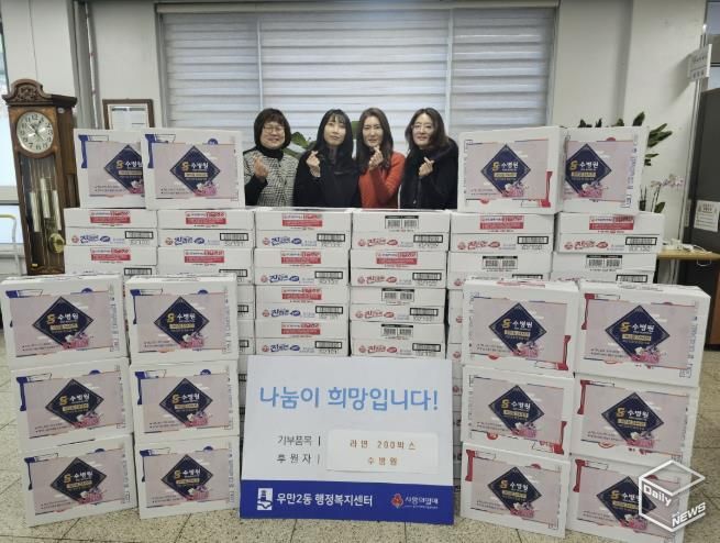 한편, 이날 기부된 라면 200박스는 우만2동 행정복지센터를 통해 홀몸 어르신, 저소득 가구 등 도움이 필요한 이웃들에게 전달될 예정이다.