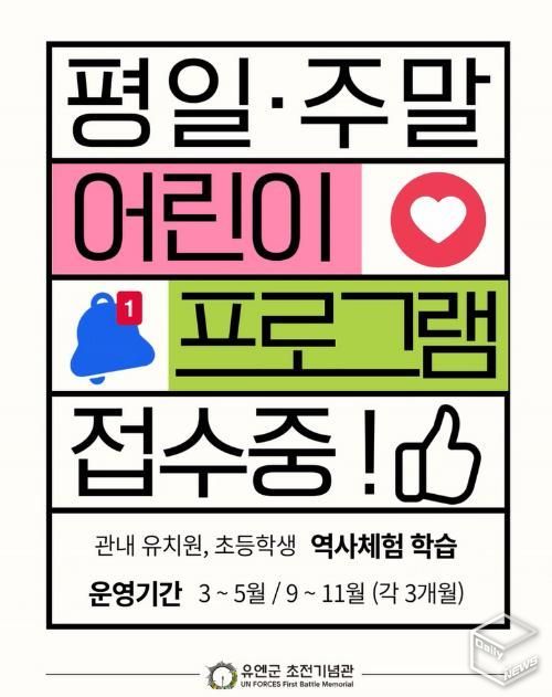 e데일리뉴스 | 오산시 유엔군 초전기념관은 2026년도 어린이 교육 프로그램 운영을 앞두고 지난 4일부터 예약 접수를 시작했다고 밝혔다.