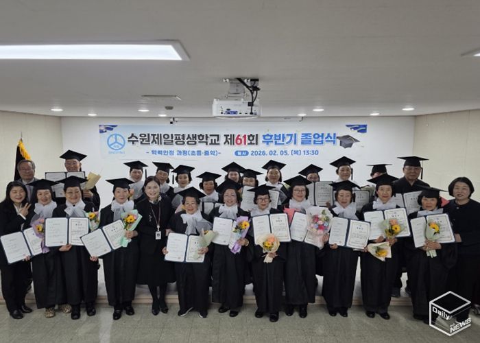 e데일리뉴스 | 수원제일평생학교는 2월 5일 오후 제61회 하반기 학력인정 졸업식을 진행했다. 졸업식은 교내 난타 동아리의 축하 공연으로 시작됐으며, 경기도교육청·수원교육지원청·수원시청 관계자들이 참석해 자리를 함께했다.