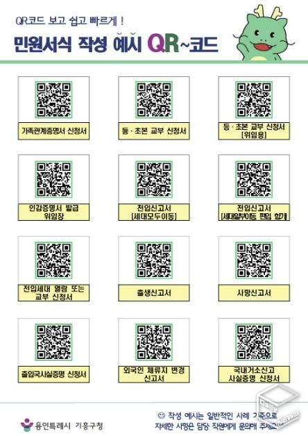 e데일리뉴스 | 용인특례시 기흥구는 시민들이 각종 민원 서식을 작성하는 데 도움을 받을 수 있도록 QR코드를 활용한 민원 서식 작성 예시를 제공한다고 11일 밝혔다.