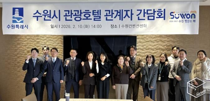 이날 간담회에는 선은임 수원시 문화관광체육국장, 황명희 관광과장 등 수원시 관계자들과 코트야드 메리어트 수원·라마다프라자호텔 수원 등 수원시 8개 관광숙박업체 관계자, 수원컨벤션센터 관계자 등이 참석했다. ‘2026~2027 수원 방문의 해’ 추진 현황, ‘수원 국제회의복합지구’ 지정 현황을 설명한 후 관광숙박업 관계자들과 관광 활성화 방안을 논의했다.