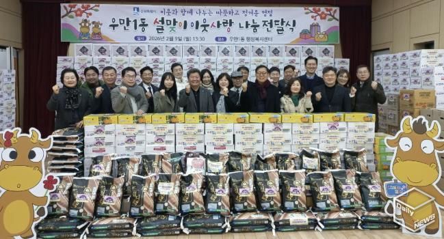 이번 전달식은 관내 유관기관과 기업체, 개인 후원자들의 정성 어린 마음이 하나로 모여 더욱 뜻깊게 진행됐다. 후원금과 함께 백미, 라면 등 생활에 꼭 필요한 생필품이 풍성하게 마련됐으며, 전달된 물품은 우만1동 내 취약계층 가정에 고루 전해져 따뜻한 설 명절을 보내는 데 도움을 줄 예정이다.