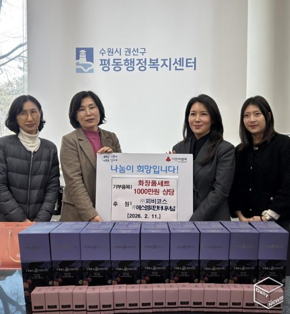 e데일리뉴스 | 지난 11일, 권선구 평동 행정복지센터는 ㈜피비코스와 ㈜에스엠피인터내셔널이 약 1천만 원 상당의 세럼·크림·선크림 등 화장품세트를 공동 기부했다고 밝혔다.