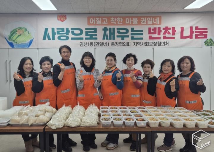 이은태 권선1동 통장협의회장은 “새해를 맞아 지역 내 한부모가정에 조금이나마 도움이 되고자 이번 반찬 나눔을 준비했다”며 “앞으로도 이웃의 어려움을 살피고 따뜻한 마음을 나누는 활동을 꾸준히 이어가겠다”라고 말했다.
