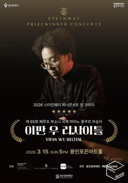 e데일리뉴스 | 용인문화재단은 오는 3월 15일 오후 5시, 용인포은아트홀에서 ‘2026 스타인웨이 위너콘서트 – 이판 우 리사이틀’을 개최한다고 밝혔다.