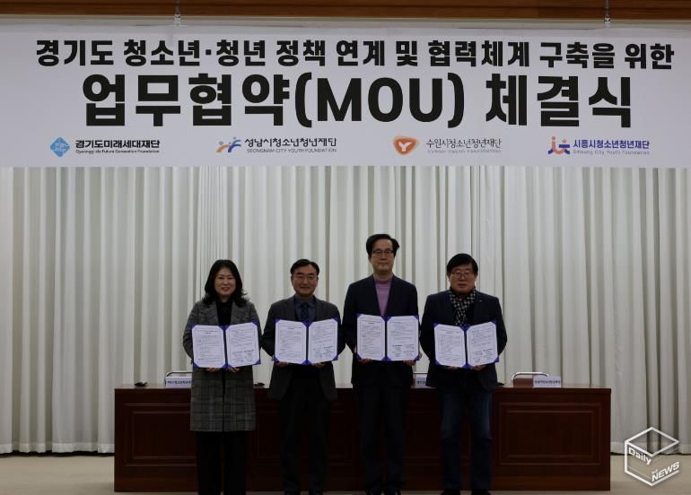 e데일리뉴스 | 경기도미래세대재단은 12일 옛 경기도청사 신관 4층 대회의실에서 수원·성남·시흥시청소년청년재단과 ‘경기도 청년 정책 연계 및 협력체계 구축 업무협약’을 체결했다.
