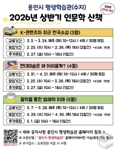 e데일리뉴스 | 용인특례시는 25일부터 수지구에 있는 용인시평생학습관에서 인문학 산책 수강생을 모집한다고 13일 밝혔다.
