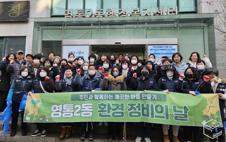 e데일리뉴스 | 수원시 영통구 영통2동은 지난 12일 행정복지센터에서 신동 원룸단지와 망포 음식특화거리에 이르기까지, 주민들의 쾌적한 설 연휴를 위해 환경정비 활동을 추진했다.
