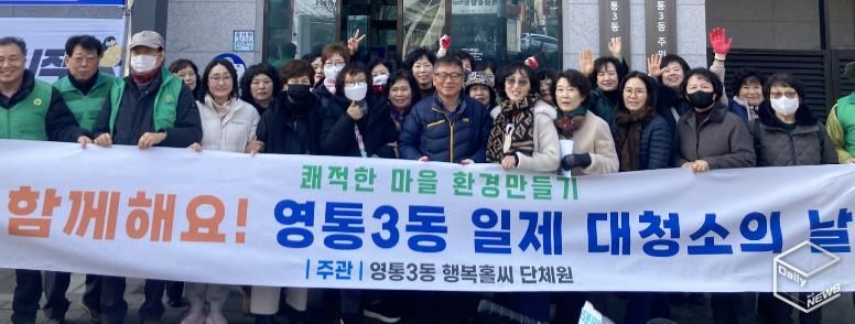 e데일리뉴스 | 수원시 영통구 영통3동 행정복지센터는 지난 12일 설 명절을 앞두고 지역 환경 정비와 깨끗한 마을 조성을 위해 통장협의회와 함께 ‘설맞이 일제 대청소의 날’을 실시했다.