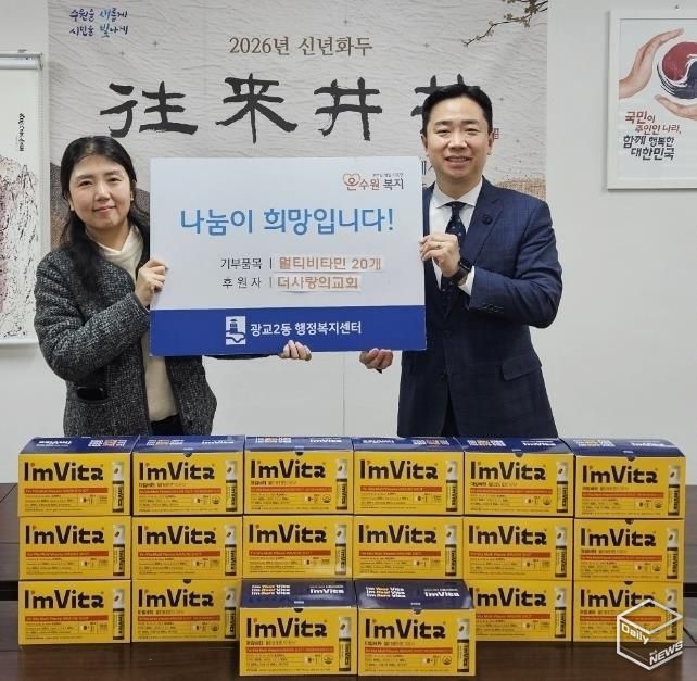 e데일리뉴스 | 영통구 광교2동은 지난 13일 더사랑의교회가 지역사회 내 어려운 이웃을 돕기 위해 광교2동 행정복지센터에 멀티비타민 20통을 전달했다고 밝혔다. 이번 기부는 소외되기 쉬운 이웃들에게 따뜻한 마음을 전하고자 마련됐다.