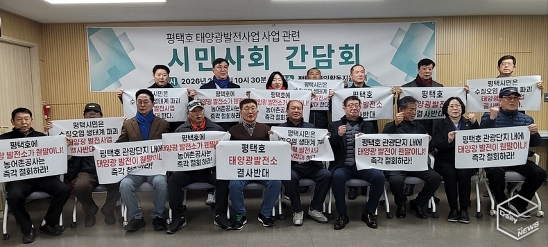 e데일리뉴스 | [평택=강경숙 기자] 평택호 수상태양광 발전사업 추진과 관련해 지역 시민사회가 강력 반발하고 나섰다. 참석자들은 절차적 정당성 문제와 관광단지 개발 차질, 수질 악화 우려 등을 제기하며 ‘범시민대책위원회’를 구성해 공동 대응하기로 뜻을 모았다.