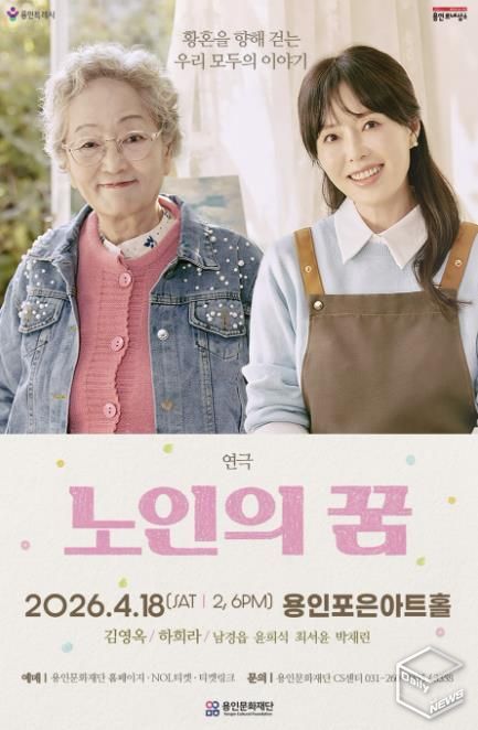 e데일리뉴스 | 용인문화재단은 오는 4월 18일 오후 2시와 6시, 용인포은아트홀에서 연극 '노인의 꿈'을 개최한다. 이번 공연은 LG아트센터 서울에서 진행한 초연의 호평을 바탕으로 전국투어로 이어지는 작품으로, 세대를 아우르는 따뜻한 가족 드라마로 기대를 모은다.