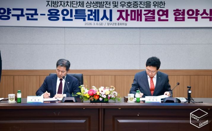 e데일리뉴스 | 용인특례시는 6일 강원특별자치도 양구군과 자매결연을 하고, 두 도시의 교류와 발전을 위해 적극 협력하기로 했다.