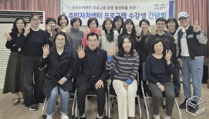 오미숙 매탄4동장은 “주민자치센터 발전을 위해 노력해주시는 주민자치회와 수강생분들께 감사드리며, 이날 간담회에서 제시된 의견을 검토해 쾌적한 주민자치센터 환경 조성과 주민을 위한 프로그램을 제공하기 위해 노력하겠다”고 밝혔다.