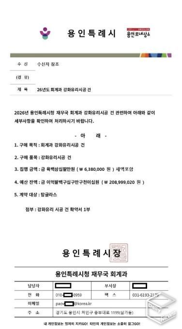 이에 시는 시청 누리집과 용인시계약정보시스템에 해당 사실을 공지해 유사 피해 방지에 총력을 기울이고 있다.