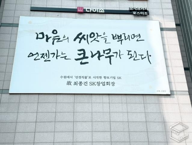 e데일리뉴스 | 수원특례시는 SK 창업주 고 최종건 회장과 고 최종현 선대회장의 어록을 담은 ‘2026 수원희망글판’ 문안을 에이케이(AK)플라자 수원점 외벽과 아이비케이(IBK)기업은행 동수원지점 외벽에 게시했다.