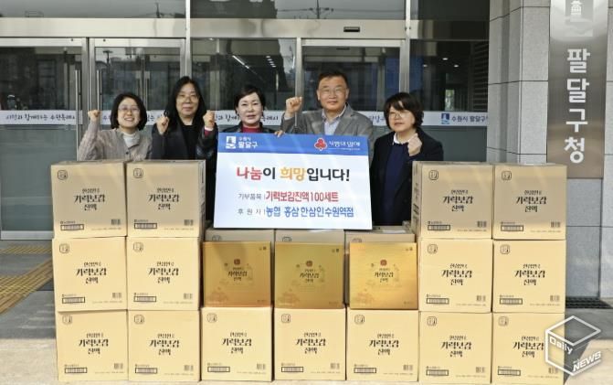 e데일리뉴스 | 수원시 팔달구는 지난 17일, 농협 홍삼 한삼인 수원역점으로부터 기부받은 기력보감 진액 100세트를 관내 취약계층에 전달하며 건강한 나눔 문화를 실천했다.