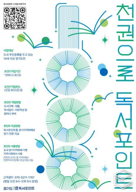 윤명희 경기도서관장은 “책을 읽는 경험이 생활 속 혜택으로 이어지도록 경기도 대표 독서문화 프로젝트인 ‘천권으로’와 연계해 독서포인트 사업을 설계했다”면서 “경기도민이 책과 함께 걷는 평생 독서의 길을 함께 하길 바란다”고 말했다.