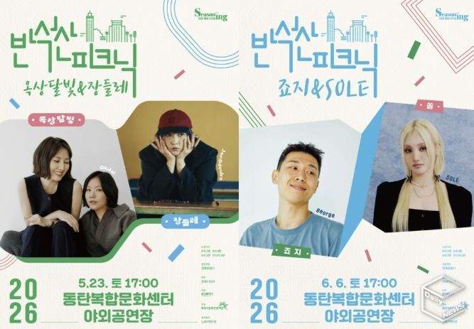 ‘반석산피크닉1 옥상달빛x장들레’는 5월 23일, ‘반석산피크닉2 죠지xSOLE’은 6월 6일 두 차례에 걸쳐 열린다. 관객들은 봄·초여름 저녁 자연에 둘러싸인 잔디밭 위에서 자유롭게 음악을 즐기는 특별한 피크닉형 공연을 경험할 수 있다.
