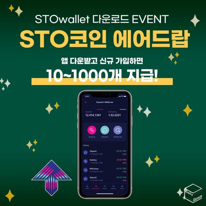 현재 '100%당첨 STO코인 무료지급 이벤트'를 진행 중에 있으며, 이벤트 참여자 모두에게 STO코인 10~1000개를 랜덤으로 지급할 계획이다. 또한 참여방법은 '한국증권형토큰협회' 홈페이지를 통해 이벤트 페이지로 접속해 신청하면 되고, 이벤트는 STO가격이 0.1달러에 도달할 때까지 한정적으로 진행할 예정이다.