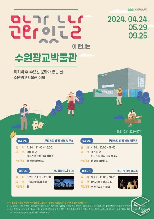 e데일리뉴스 | 수원광교박물관이 4·5·9월 ‘문화가 있는 날·경기도 문화의 날’(매달 마지막 수요일)에 박물관 야외 공간에서 어린이들을 위한 공연을 선보인다.