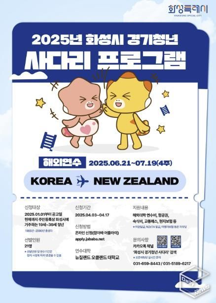 참가자격은 2025년 1월 1일부터 공고일 현재까지 주민등록상 화성시에 주소를 둔 19세~39세 이하 청년으로, 사전교육, 해외대학 연수, 성과공유회, 사후관리 프로그램 등 모든 일정에 참여가 가능해야 한다.