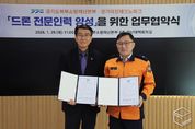 e데일리뉴스 | (재)경기대진테크노파크(원장 안준수)와 경기도북부소방재난본부(본부장 강대훈)는 경기북부 지역의 소방용 드론산업 육성과 전문인력 양성을 위해 업무협약(MOU)을 체결했다고 밝혔다. 이번 업무협약식에는 경기대진테크노파크 안준수 원장, 권재형 미래성장본부장, 김용국 기업성장팀장과 경기도북부소방재난본부 강대훈 본부장, 장동권 대응과장, 강건영 대응팀장이 참석해 협력 방안에 대해 논의했다. 안준수 경기대진테크노파크 원장은 “경기북부 신산업으로 주목받고 있는 드론산업 고도화를 중점적으로 추진하고 있다”며, “방위·소방 분야 등 드론 수요가 확대되는 만큼 현장 맞춤형 지원을 지속적으로 강화해 나가겠다”고 밝혔다. 이에 대해, 강대훈 경기도북부소방재난본부장은 “이번 협력을 통해 소방용 드론 운영 전문인력 양성에 그치지 않고, 차기 교육과정 고도화를 위한 현장 실무 데이터 공유 등 실질적인 성과를 창출할 수 있도록 노력하겠다”고 말했다. 권재형 미래성장본부장은 “지난해부터 경기도 위탁사업인 ‘드론아카데미 운영사업’을 통해 현장 수요를 반영한 전문인력 양성과 보유 장비 대여 등 실무 중심의 지원을 추진해 왔다”